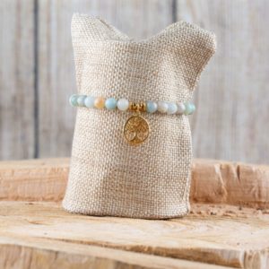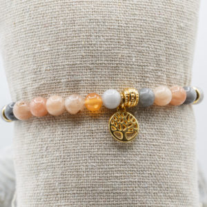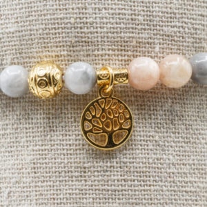 VENDU – Bracelet By Aude – Quartz oeil de chat & Pierre de soleil – Arbre de vie