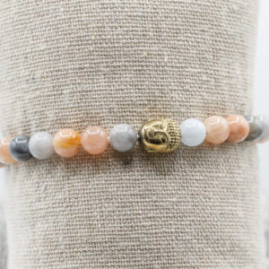 Bracelet Pierre de Lune Rose Tête de Bouddha
