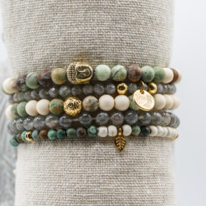 VENDU – Bracelet By Aude – Quartz oeil de chat & Pierre de soleil – Bouddha
