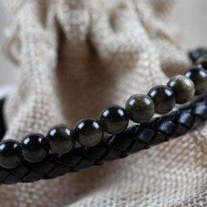 VENDU – Cuir & Pierre double Obsidienne Dorée