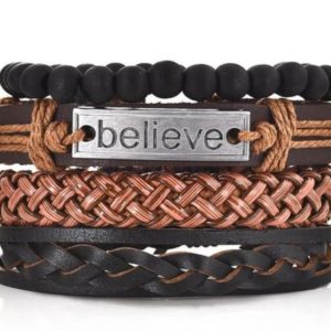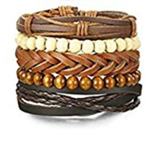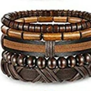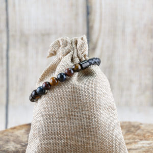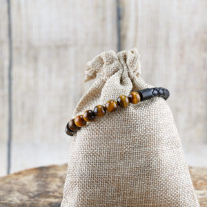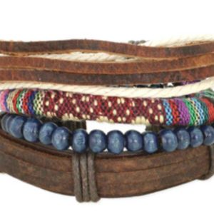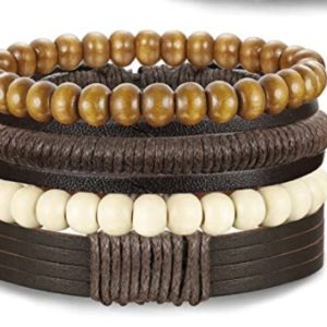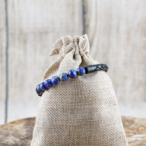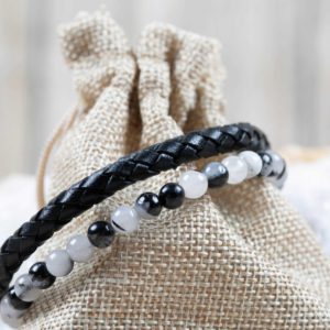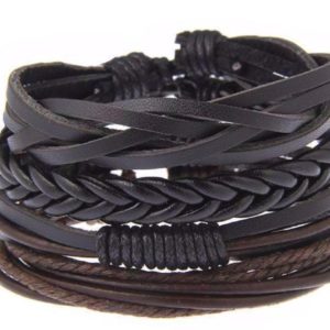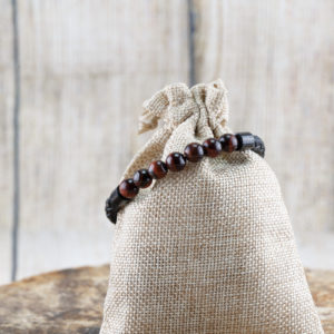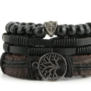 Bracelet cuir et bois mixte noir – Arbre de vie