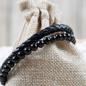 VENDU – Cuir & pierre double Quartz Tourmaliné